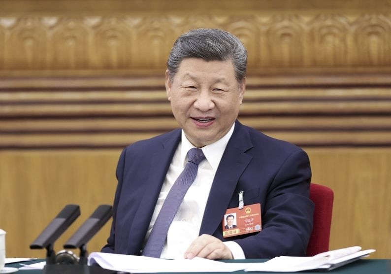 3月5日下午,中共中央总书记、国家主席、中央军委主席习近平参加他所在的十四届全国人大四次会议江苏代表团审议。图片来源:新华网